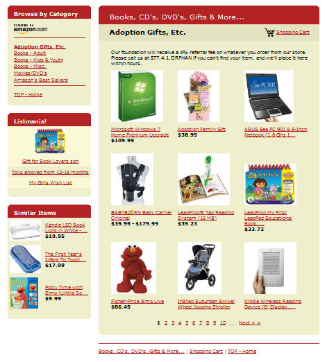 Link to example: www.TheOrphanFoundation.org/store.htm